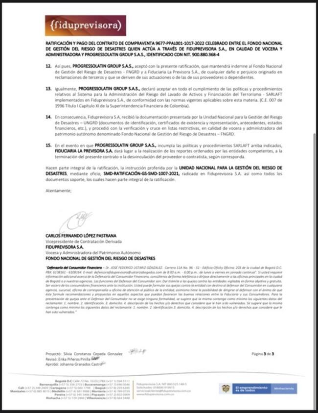 A continuación podrán ver el listado de contratos que, en menos de cuatro años, firmó Gestión del Riesgo con Progressolatin Group, los cuales, en total suman varios miles de millones de pesos, así como algunos de los contratos que viabilizó el antecesor de Daniela Andrade en la Fiduprevisora.