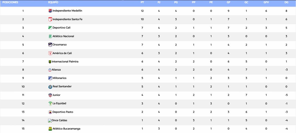 La cuarta fecha del fútbol colombiano concluyó en la capital del país con la victoria por la mínima diferencia (1-0)de Millonarios en el clásico frente al América de Cali. El único tanto del compromiso disputado en El Campín llegó por cuenta de María Alejandra Leal.