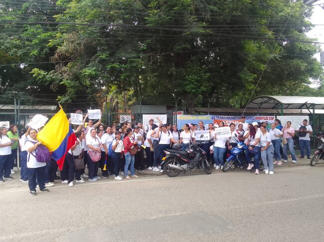 Empleados de 8 unidades de Hogares infantiles en Neiva paralizaron actividades y protestan hoy porque el ICBF con el operador no les paga los salarios.
