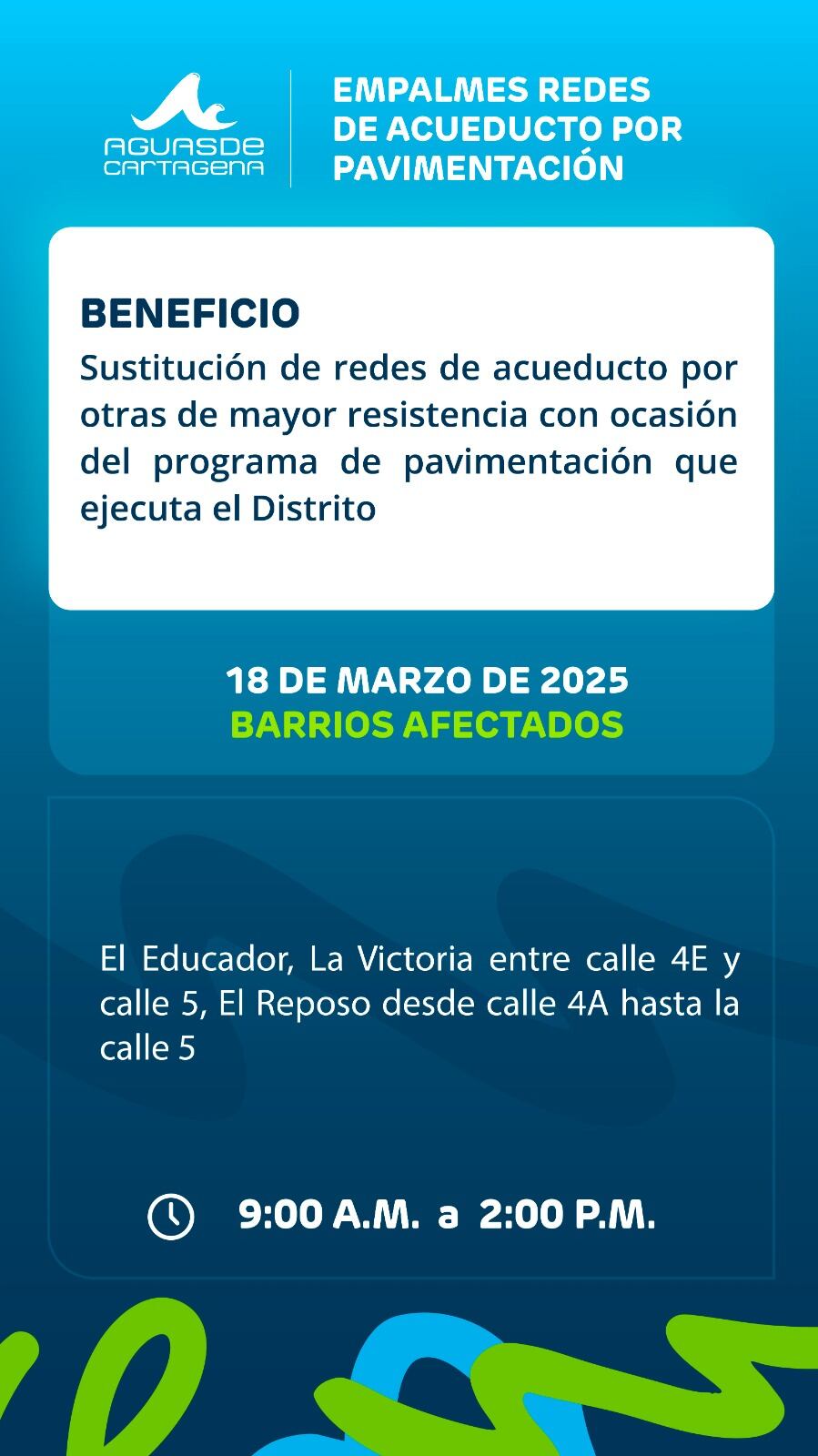 La empresa Aguas de Cartagena dio a conocer las comunidades que se verán impactadas con un trabajo, que busca mejorar las redes de acueductos.