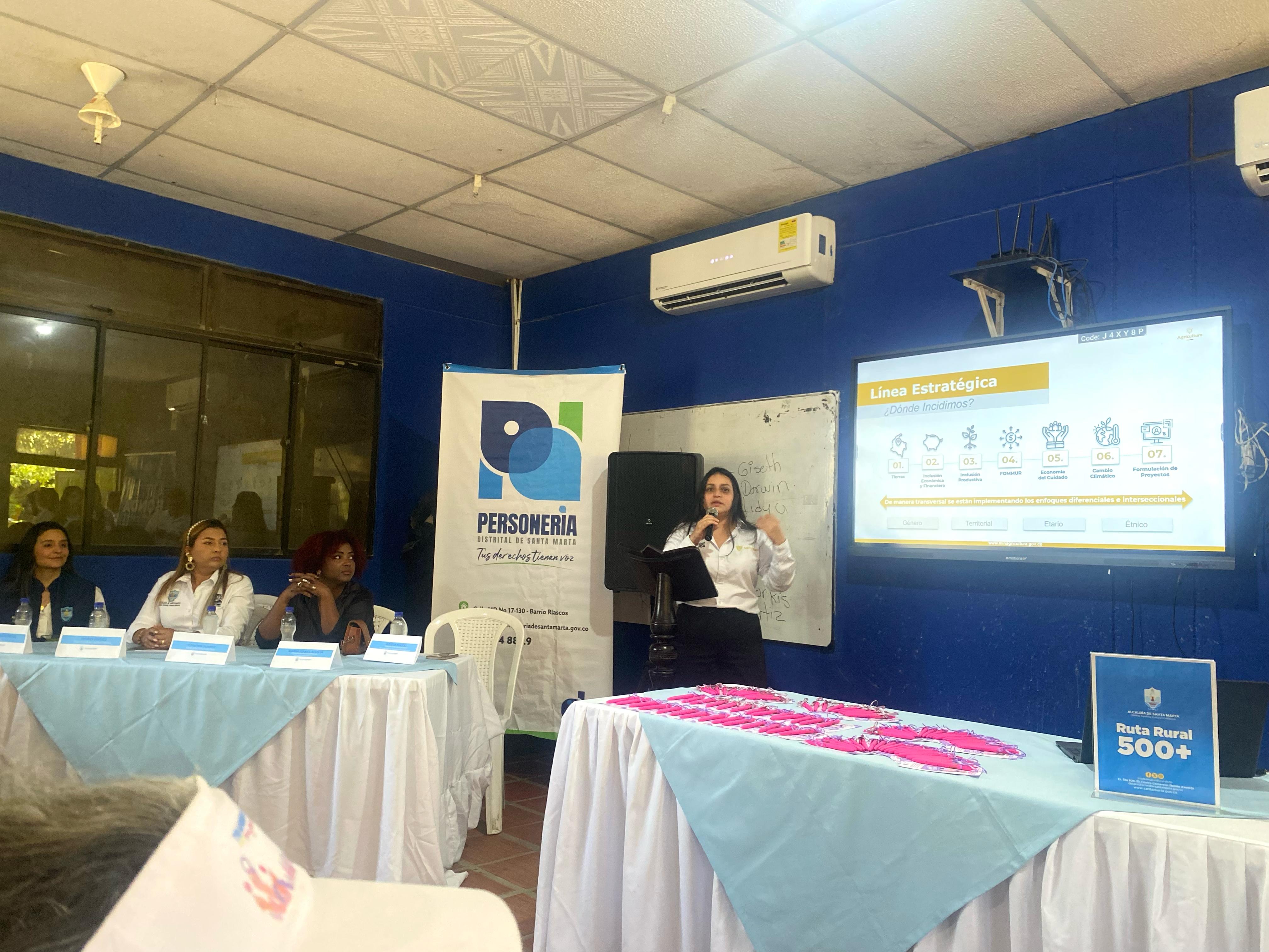 Los corregimientos de Bonda y Taganga, en Santa Marta, fueron escenarios de grandes anuncios por parte del Ministerio del Interior, Ministerio de Agricultura y la Autoridad Nacional de Acuicultura y Pesca -AUNAP-, quienes brindaron sus distintas ofertas institucionales a las mujeres rurales. En el marco de este evento, la delegada del MinInterior, María Isabel Acosta, anunció que desde el gobierno se crearán programas de beneficio para las mujeres rurales de la Sierra Nevada.