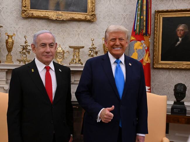 JERUSALÉN, 05/02/2025.- El presidente de Estados Unidos, Donald Trump (d), junto a su homólogo israelí Bejamín Netanyahu, en el despacho Oval de la Casa Blanca. El primer ministro israelí, Benjamín Netanyahu, aseguró anoche a su homólogo estadounidense, Donald Trump, que "Israel acabará la guerra ganando la guerra" y le agradeció, en una conferencia de prensa aún en la Casa Blanca, el apoyo demostrado tanto en los últimos años como en sus primeros días en el Despacho Oval. EFE/ Avi Ohayon (GPO) SOLO USO EDITORIAL/SOLO DISPONIBLE PARA ILUSTRAR LA NOTICIA QUE ACOMPAÑA (CRÉDITO OBLIGATORIO) / Avi Ohayon/Gobierno israelí (EFE)