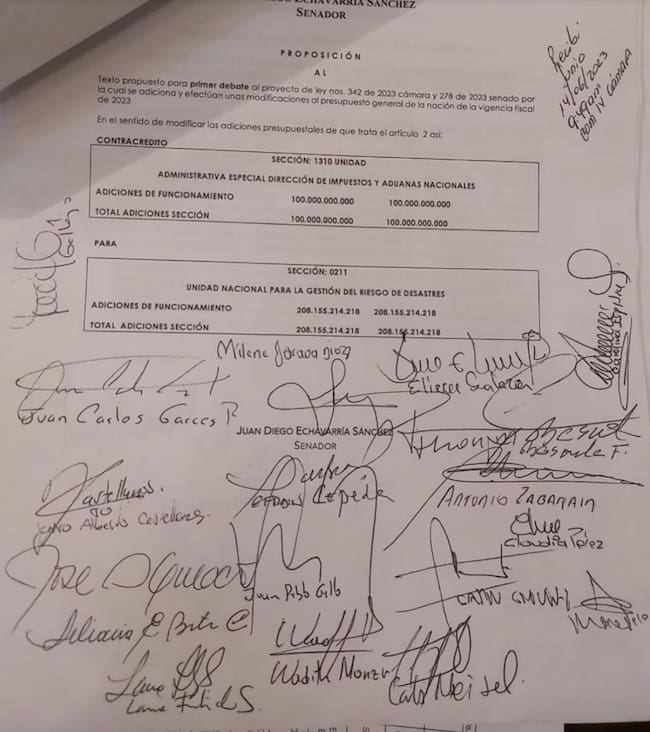 Todo se remonta a junio de 2023, en momentos en los que se votaba el Presupuesto General de la Nación para el año 2024, y donde de forma extraña apareció una proposición que, en momentos donde se luchaba por reducir la evasión y fortalecer la planta de la DIAN, un grupo de 20 senadores promovió antes que fortalecerla, quitarle 200.000 millones de pesos de la adición presupuestal a la DIAN, y entregar esos recursos a la UNGRD de manera intempestiva y sin mayor justificación en el texto.