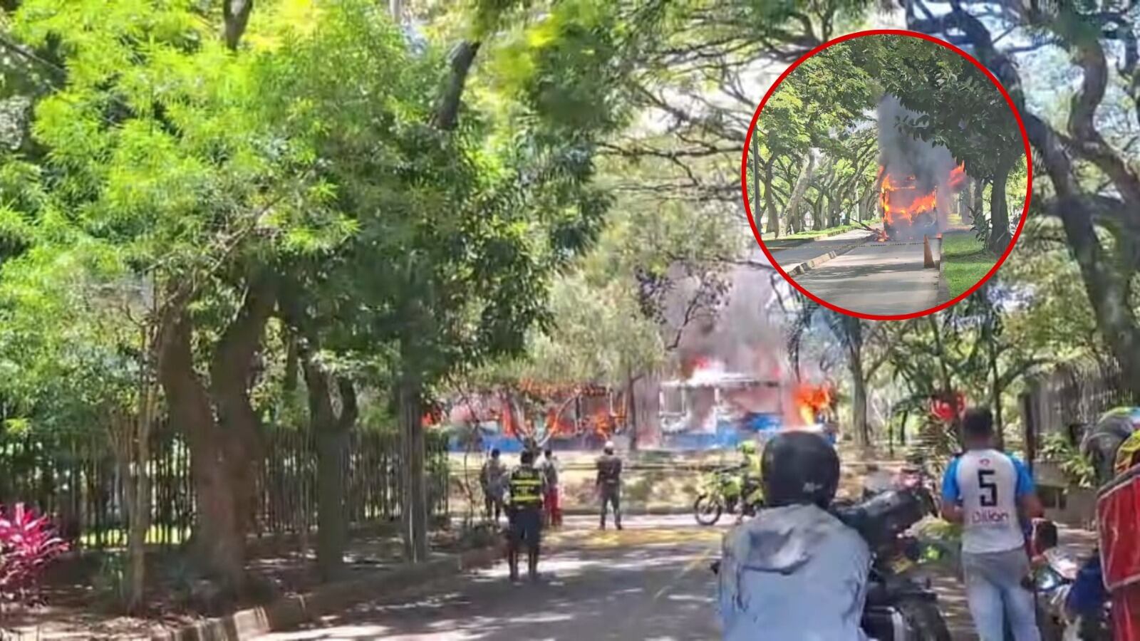 Quemado y destruido bus del MIO en el marco de la movilización en apoyo a las reformas del gobierno