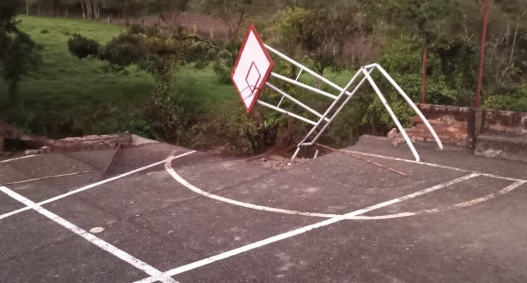 Estudiantes de la vereda Siachía también se quedaron sin escuela por los daños que se registraron en su infraestructura, como el hundimiento del suelo en la parte de la cancha.