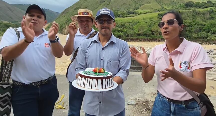 Con un pastel de cumpleaños y cantando el happy birthday, concejales del Cauca y Huila ‘celebraron’ cuatro años de incumplimiento en las obras para el mejoramiento de la transversal del Libertador, carretera que conecta a estos dos departamentos.