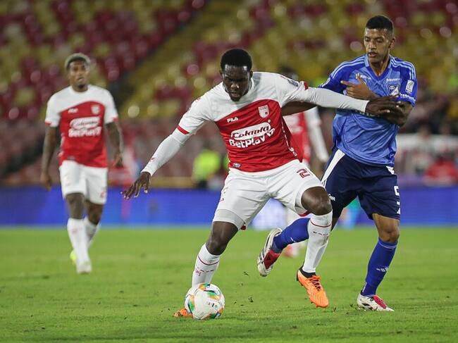 Yilmar Velásquez durante un duelo de Liga entre Santa Fe y Millonarios / Colprensa