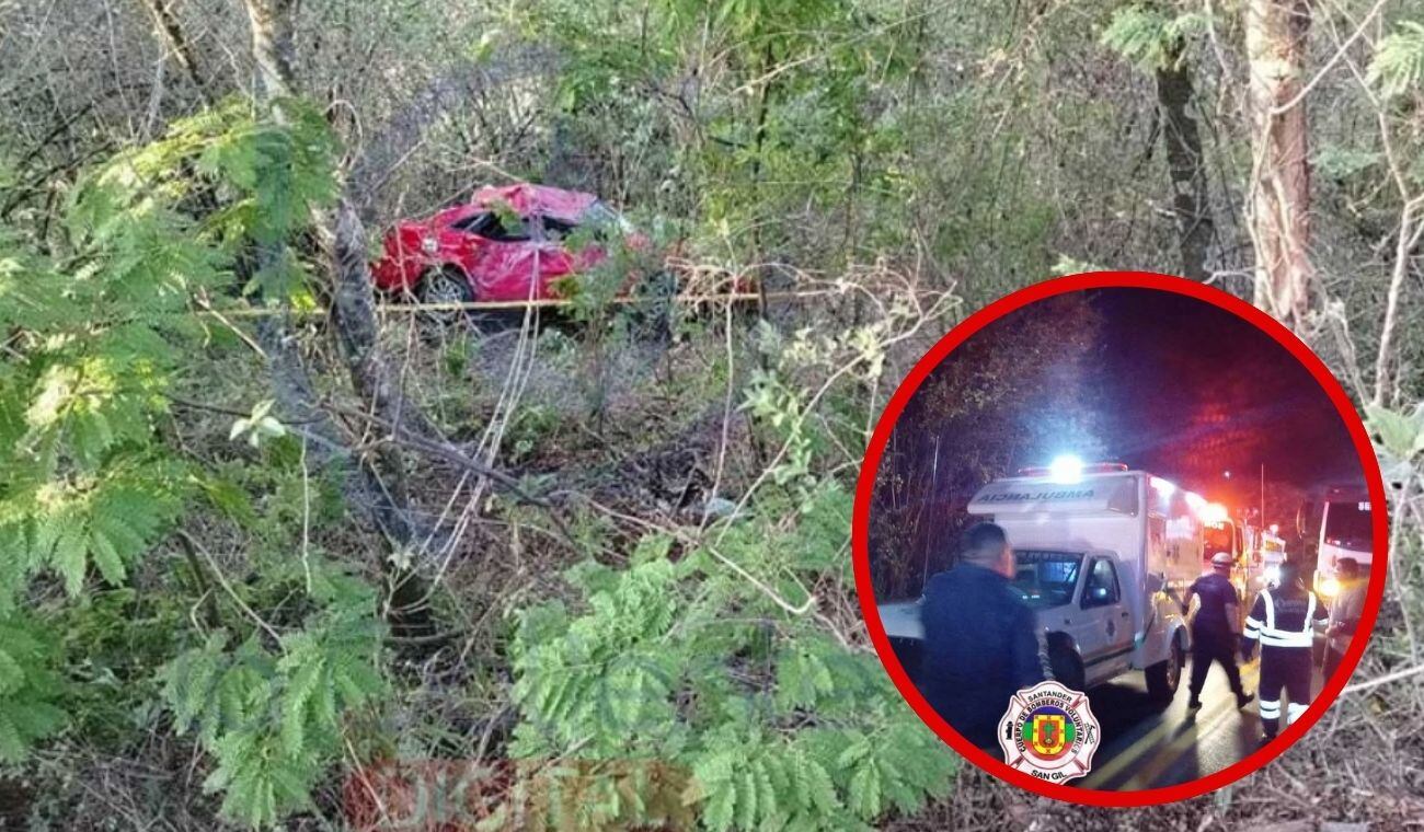 El vehículo Chevrolet Optra de color rojo con placas QFO 859 cayó a un abismo desde una altura de aproximadamente 30 metros.