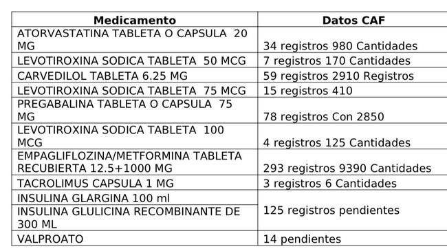 Según explicó el equipo auditor, la lista de medicamentos seleccionada por la Superintendencia constaba de 22 medicamentos, de los cuales 20 eran de consumo frecuente, mientras que los otros dos medicamentos, Tacrolimus cápsula de 1 mg y Micofenolato de Mofetilo, son utilizados para pacientes post-trasplante.