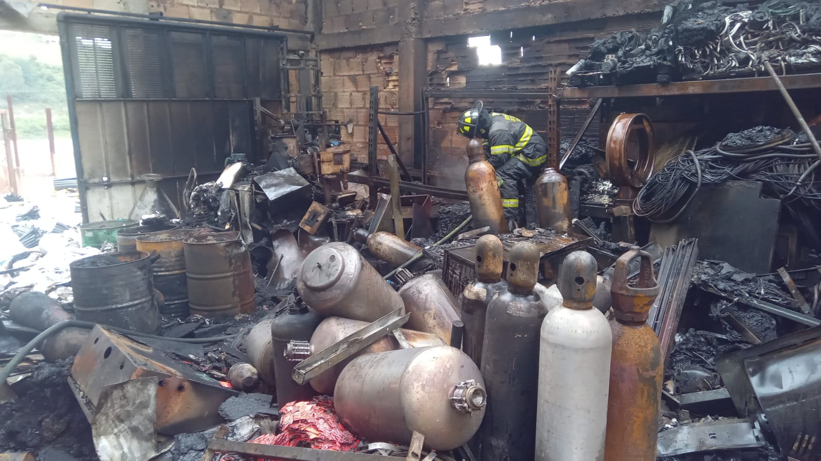Así quedó la bodega de reciclaje en Sibaté. Foto: Bomberos Cundinamarca.