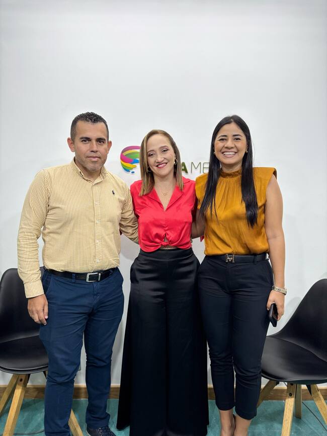 Julio Montiel, periodista de Caracol, Dora Montaña, secretaria de planeación del Tolima y Andrea Rincón, gerente de Prisa Media en Tolima