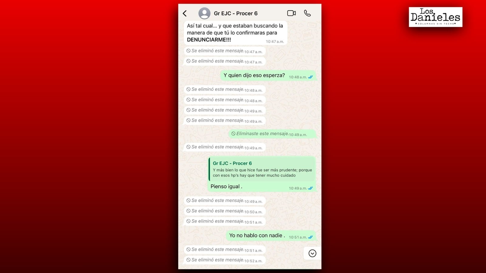 –Así tal cual –escribió Zapateiro– y que estaban buscando la manera de que tú lo confirmaras para DENUNCIARME!!!”