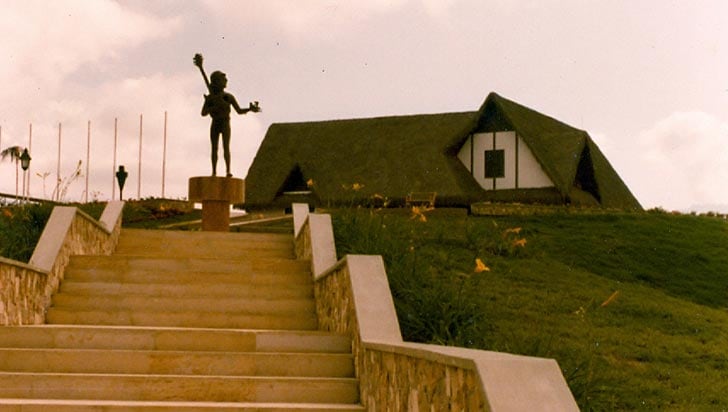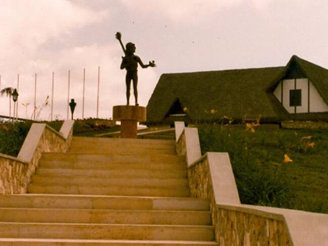 Así era la posada alemana con la estatua de Jhon Lennon. Foto Cortesía archivo Museo Gráfico del Quindío