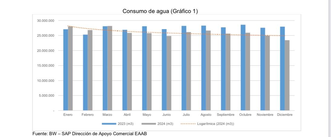 Comparación de consumo agua por años. Imagen: Acueducto de Bogotá.