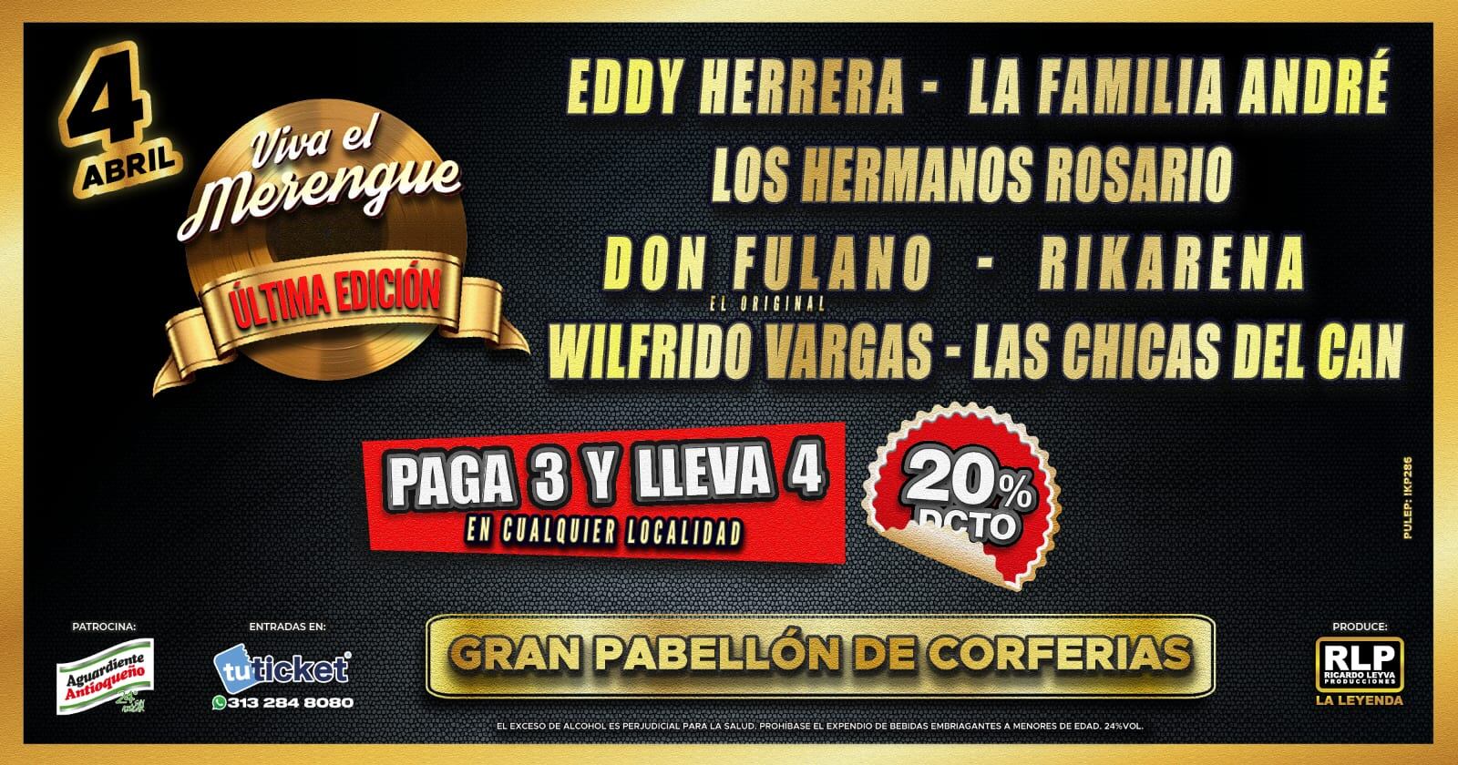 El gran pabellón de Corferias de Bogotá vibrará al ritmo del Merengue con las presentaciones del gran concierto ‘Viva El Merengue’, un evento que celebra la evolución del genero y reunirá a destacados exponentes del género musical originario de Republica Dominicana.