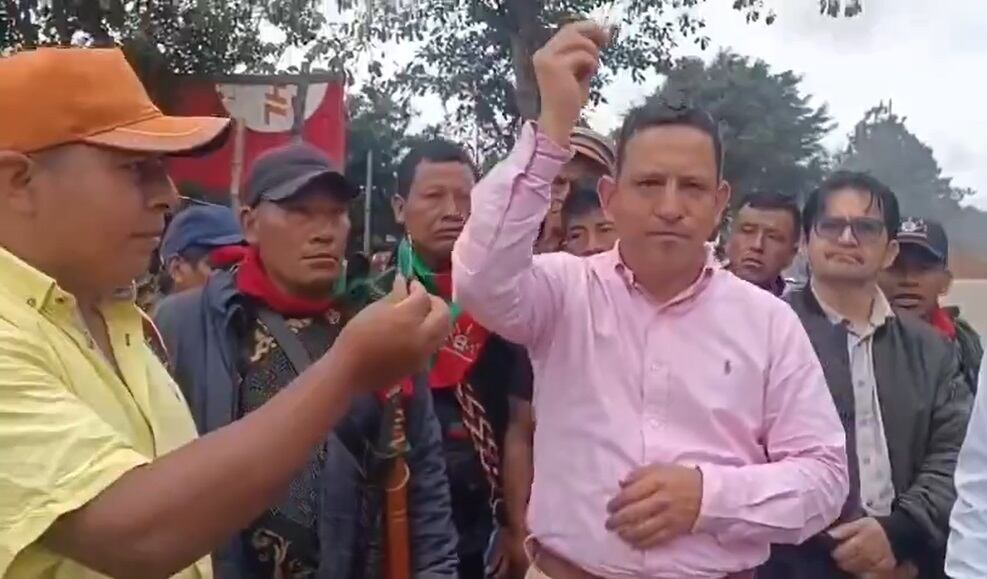 En la controversial escena, el líder indígena y vocero de los manifestantes, Ferney Tumbo le entregó ‘las llaves de la reapertura de la vía Panamericana’ a Felipe Benavidez, coordinador de la oficina del Ministerio del Interior en Cauca.