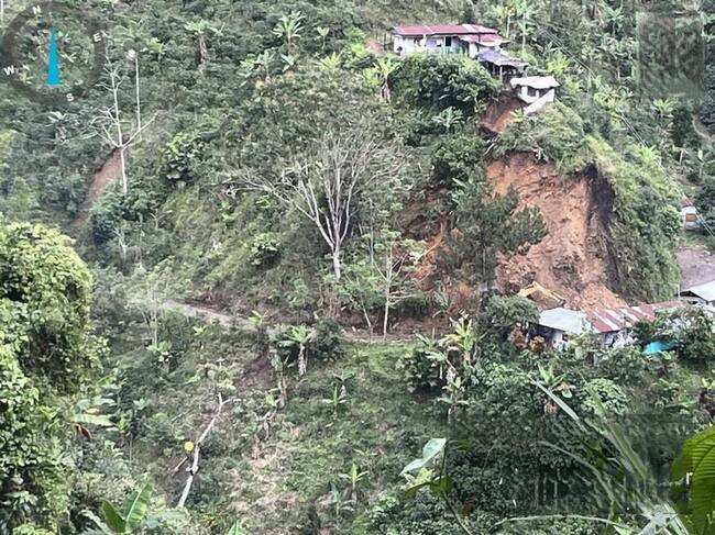 Derrumbe en la vereda La Bamba en Marquetalia, Caldas. Foto: Bomberos Marquetalia.