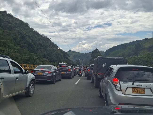 Congestión vial en el corredor Pacífico 1 en Amagá, Antioquia. Foto: @teorendono