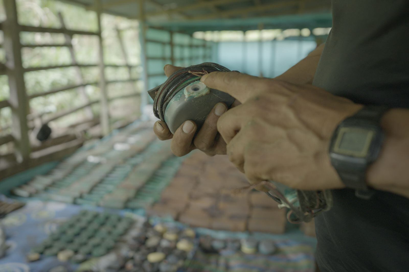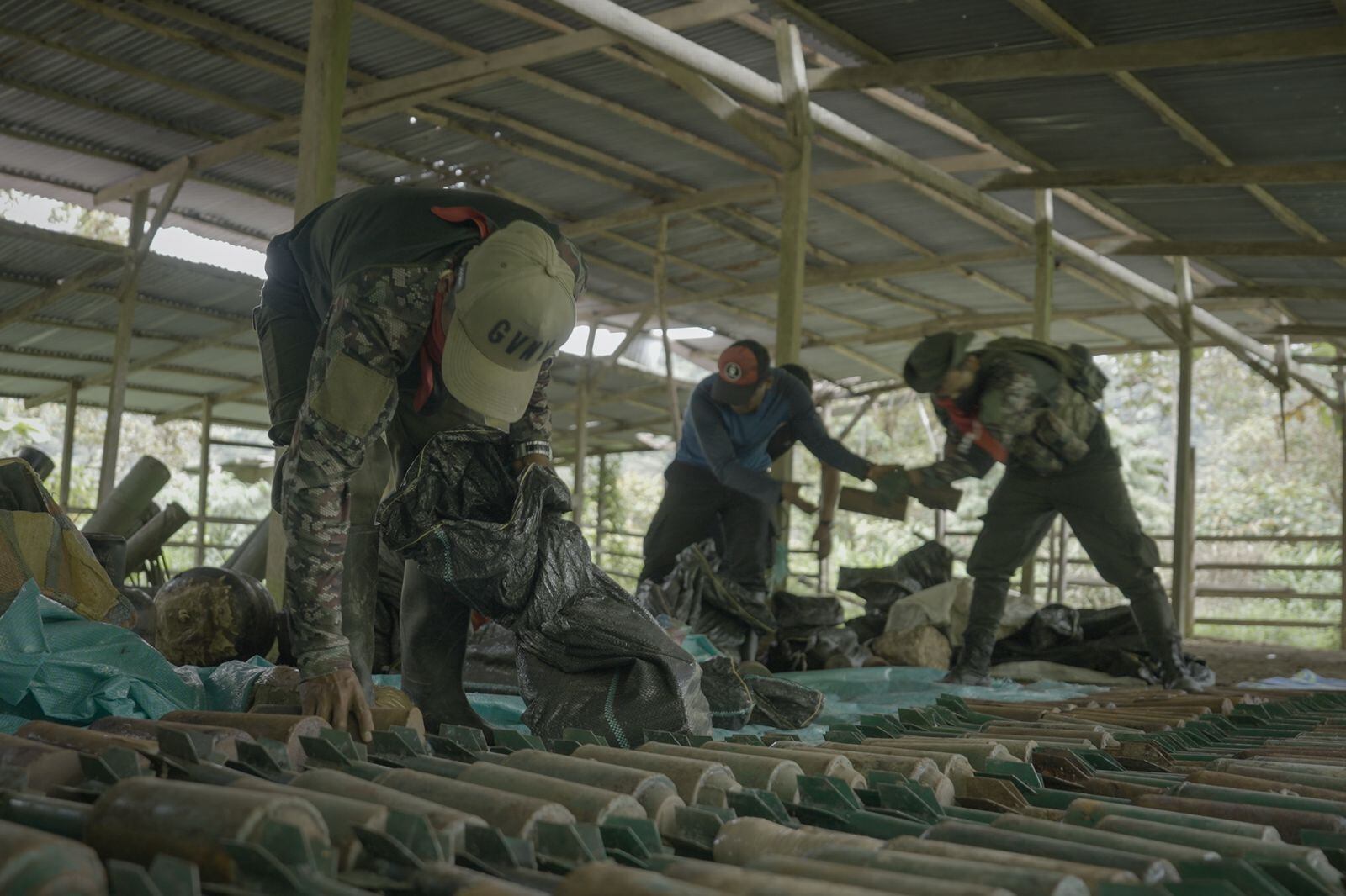 “Cuando una insurgencia se arma para atacar al Estado, hay una multiplicidad de material de guerra que ellos utilizan. Una cosa pueden ser los fusiles, otra cosa pueden ser las armas cortas y otra cosa es ese material que sirve para cometer atentados o para detener al enemigo. Entre eso están las granadas de alto alcance, están los morteros y lo que Comuneros ha entregado es lo que ellos han llamado un taller de armas popular, donde se entregaron muchos de estos elementos, granadas de lanzamiento de 6 kilos, se entregaron también granadas de 60 milímetros industriales, se entregaron unas minas dirigidas de 25 kilos, todos estos fueron elementos que Comuneros utilizaba para hacer ataques en contra de sus enemigos y eso es lo que en el día de hoy estaremos destruyendo. Como lo dijo en su momento el equipo técnico de la fuerza pública y del ministerio de defensa, un arsenal de guerra que si se hubiera utilizado habría podido causarle mucho daño a la sociedad a las personas que hubieran sido atacadas con estos elementos”.