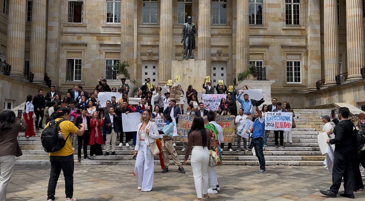 Un grupo de jóvenes, miembros de la plataforma nacional de juventudes, adelantaron una manifestación en las instalaciones del Congreso de la República, debido a que el viceministro de juventudes, Pablo Mateo Zabala, no se presentó a la sesión anual ordinaria del Consejo Nacional de Juventudes.