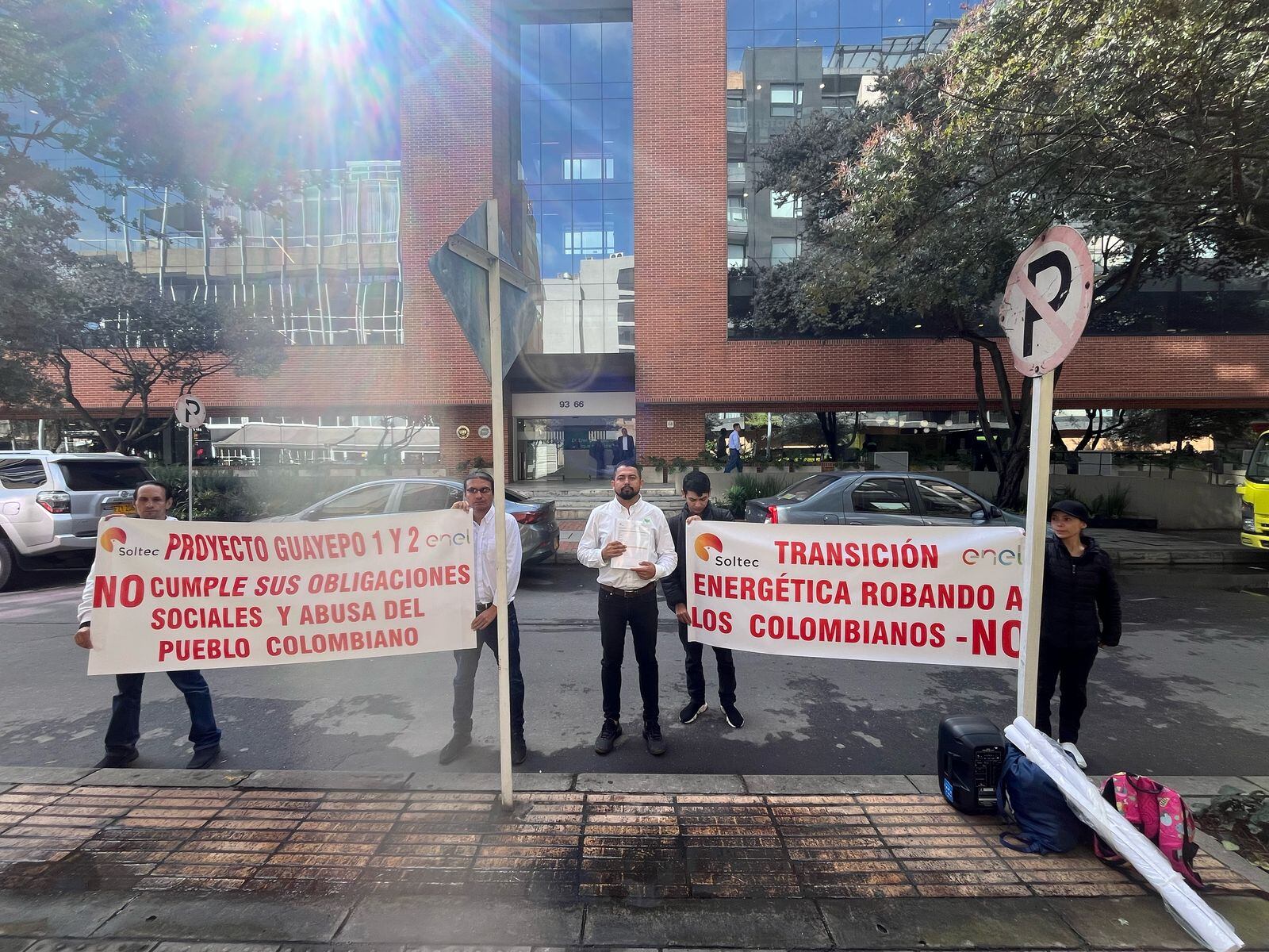 Desde enero los trabajadores han hecho bloqueos en el parque solar. Ante la falta de respuestas, algunos llegaron a las oficinas de Enel en Bogotá.