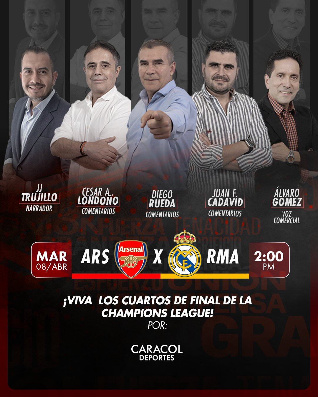 El compromiso tendrá lugar en el Emirates Stadium, a partir de las 2:00 pm, de Colombia. Las emociones del partido se podrán vivir a través de la transmisión por streaming de El Fenómeno del Fútbol de Caracol Radio, en las frecuencias a nivel nacional, así como en el minuto a minuto en la página web, caracol.com.co.