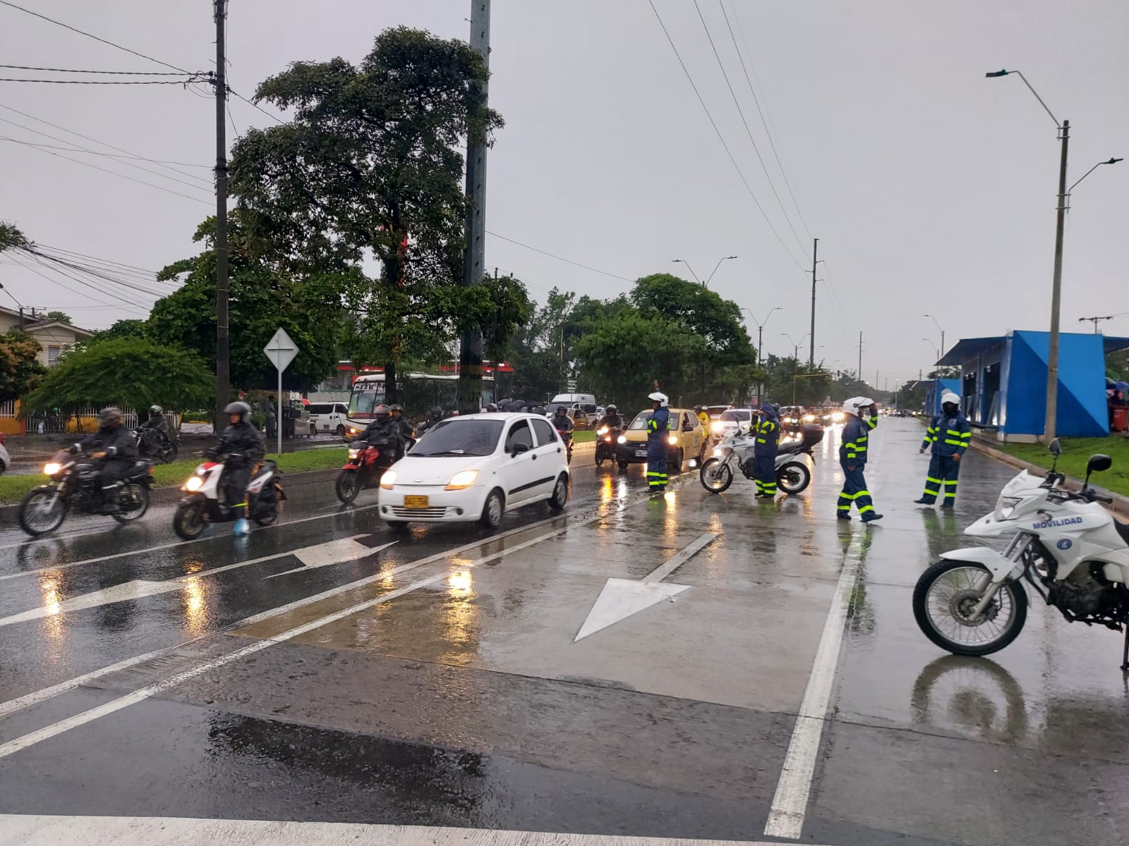 “Tenemos algunos semáforos fuera de servicio, como la calle quinta con 27, la carrera primera con 34, avenida segunda norte con 44″, con el 100% de los agentes atendiendo los puntos de mayor atención a causa de las inundaciones, recalcó Duvier Osse.