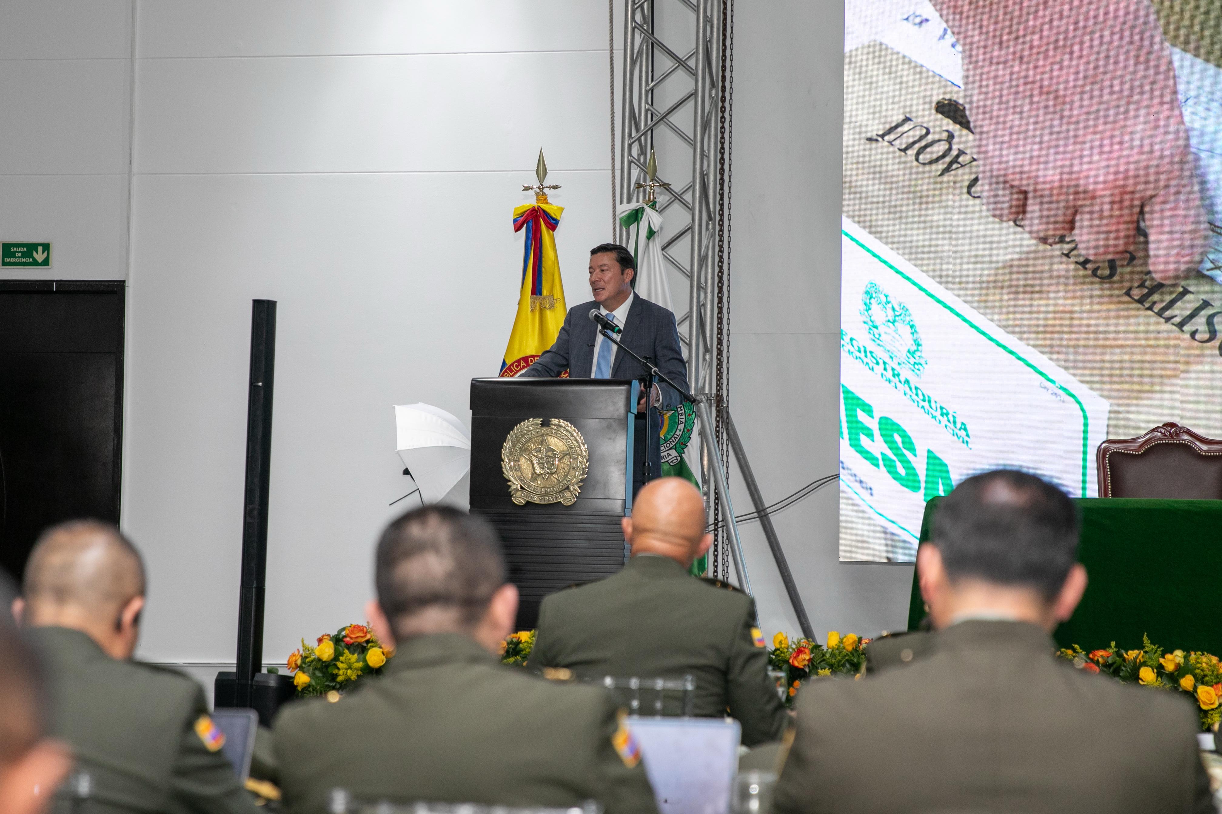 “El compromiso es total. En esa tarea tenemos que trabajar con mucha determinación para garantizar unas elecciones seguras, íntegras y transparentes”, afirmó el registrador nacional Hernán Penagos , durante su intervención en el Encuentro Nacional de Comandantes de Policía.