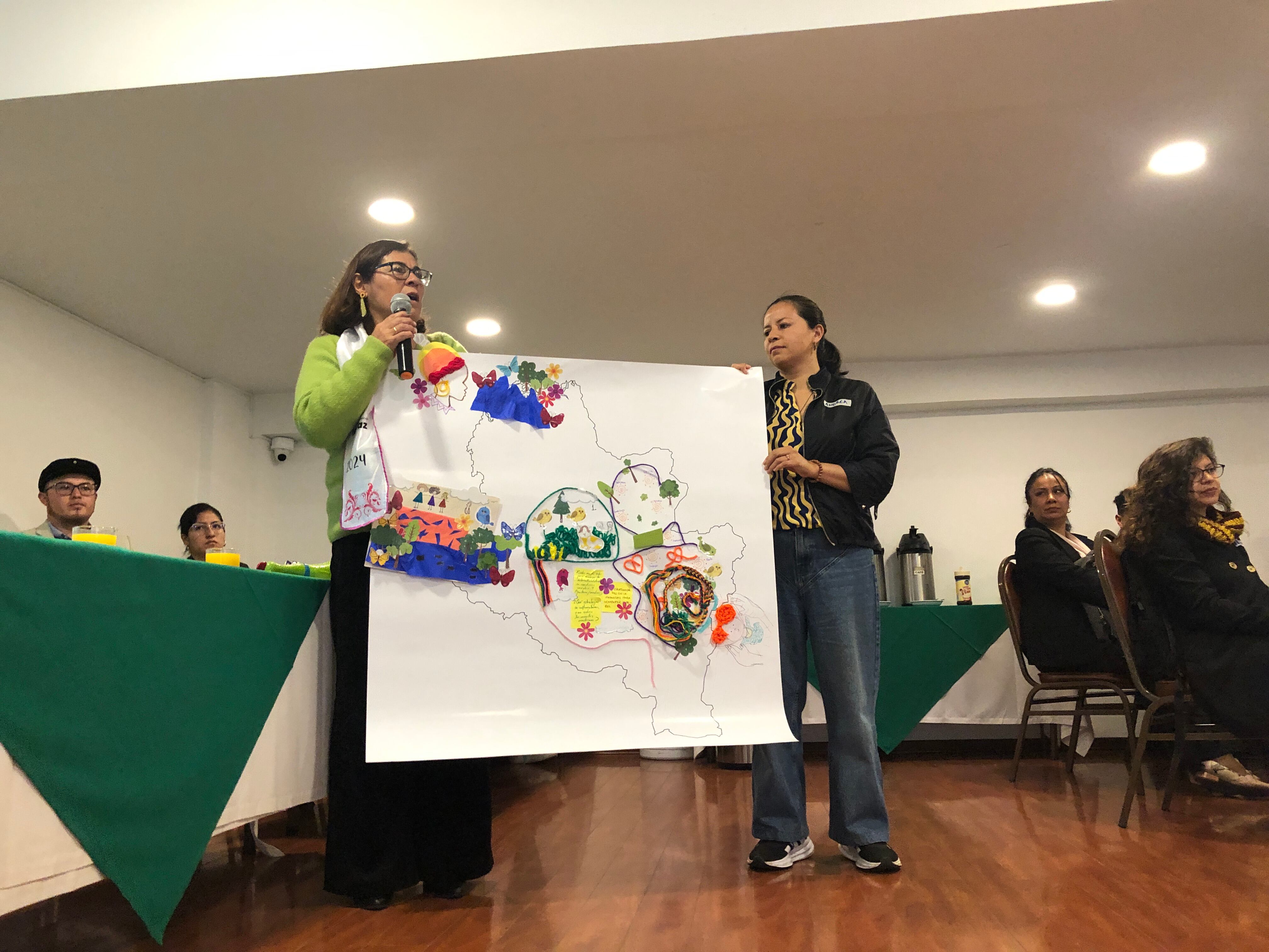 La investigadora y decana de la Universidad de Nariño, María Elena Erazo Coral, presentó su proyecto “Propuesta política de las mujeres para posicionar la paz” con incidencia en los territorios del centro y la cordillera de Nariño. Tras compartir los hallazgos de su investigación y el trabajo en equipo junto a las lideresas CorpoMuNar, la decana afirmó que esta jornada le permitió conocer otras investigaciones en el mismo territorio y evidenciar cómo “en conjunto, academia y saberes territoriales están jalonando procesos de transformación. Son proyectos con incidencia social, cultural, política y ambiental”.