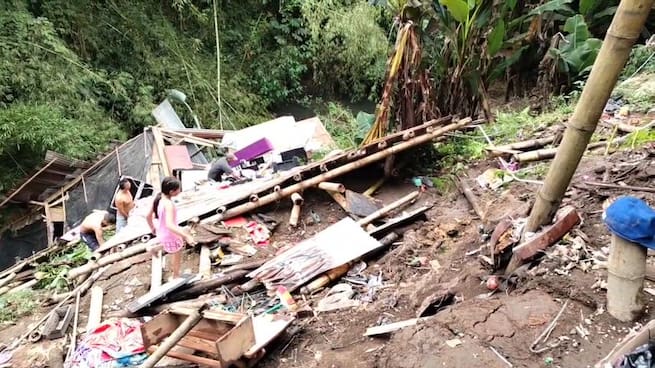 Al parecer el deterioro de las bases de la vivienda construida en guaduas y esterilla provocó el colapso de la construcción.