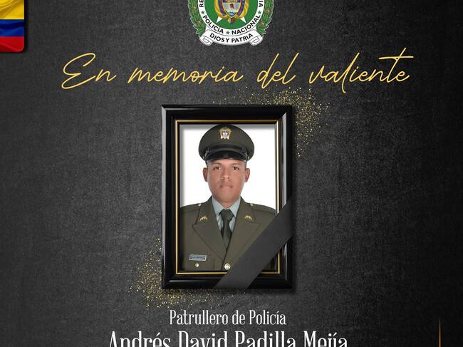 La dirección de la Policía Nacional realizó el anuncio a través de su cuenta X, donde manifiesta una recompensa por información que conduzca a ubicar a los responsables del ataque armado que le costó la vida al patrullero Andrés David Padilla Mejía.