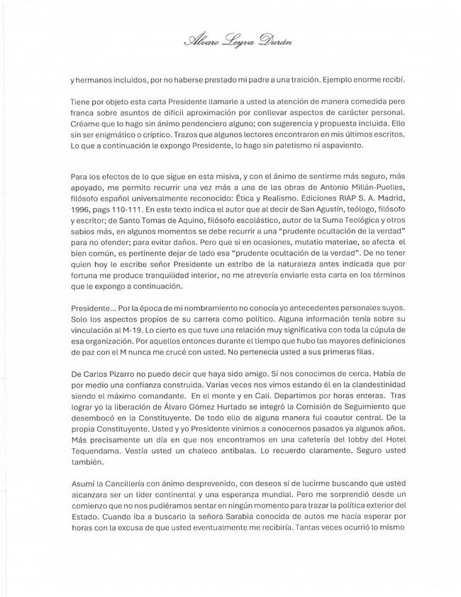 Esta es la carta de Álvaro Leyva al presidente Petro