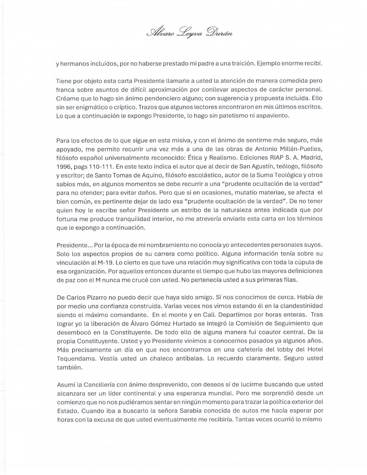 Esta es la carta de Álvaro Leyva al presidente Petro