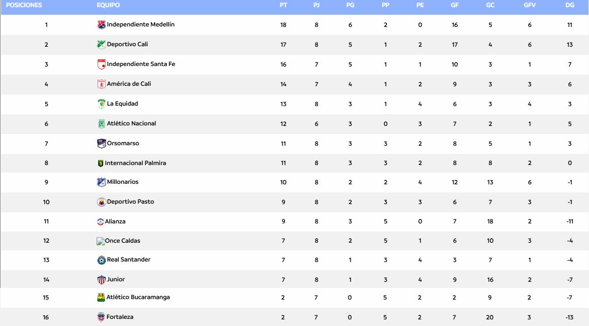 Conozca cómo se encuentra la tabla de posiciones después de ocho jornadas, los equipos que tienen opciones de avanzar y la programación para la siguiente fecha que es la de clásicos.