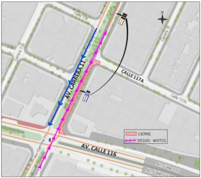 - Se trasladará el paradero del SITP, ubicado en la Av. Carrera 11 entre la Av. Calle 116 y la Calle 117A, 150 metros al norte.