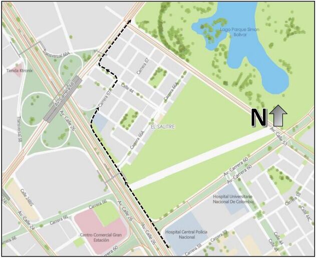 • Los usuarios que transiten en sentido Norte – Sur por la Av. Carrera 60 podrán tomar la Av. Calle 63 al occidente – Av. Carrera 68 al Sur. (Ver Mapa 2).