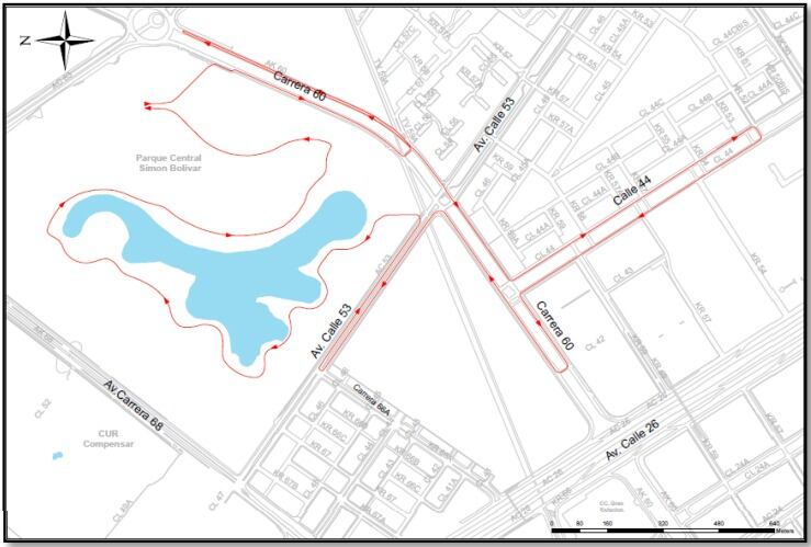 • Calzada Oriental de la Av. Carrera 60 entre la Av. Calle 26 y la Av. Calle 53: cierre total desde las 9:00 am hasta las 10:30 am.