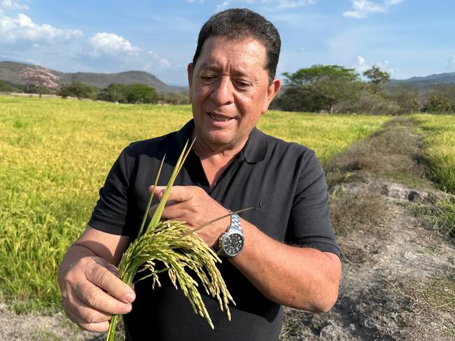 AME9709. BOGOTÁ (COLOMBIA), 15/04/2025.- Fotografía del 25 de marzo del productor y asesor de la Asociación Hondureña de Agricultores y coordinador de la representación de los arroceros de todo el país en la Comisión Nacional del Arroz, Fredy Torres, hablando durante una entrevista con EFE en una plantación de arroz en el municipio de Jesús de Otoro (Honduras). Los productores hondureños de arroz exigen al Gobierno que preside Xiomara Castro políticas claras en apoyo al sector agrícola nacional, para no retirarse de una actividad que se ha visto reducida drásticamente en los últimos diez años. EFE/Germán Reyes ARCHIVO / Germán Reyes (EFE)