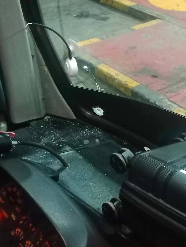 Bus impactado con arma de fuego en Párraga- Cauca- Foto: cortesía