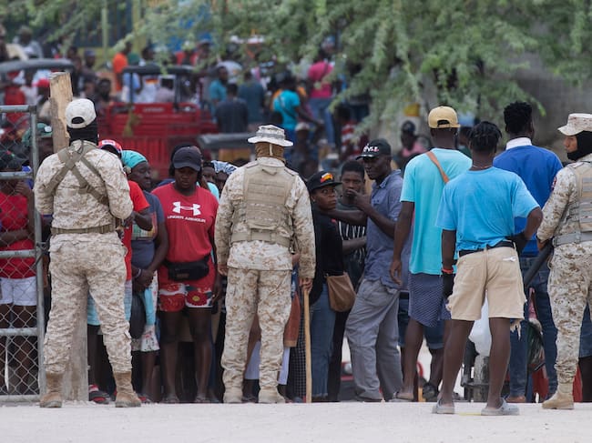 AME2249. BOGOTÁ (COLOMBIA), 25/04/2025.- Fotografía de archivo del 20 de marzo de 2025 en la que se ven integrantes del Ejército de República Dominica controlando el ingreso entre República Dominicana y Haití, en Pedernales (República Dominicana). República Dominicana prosigue con la detención y repatriación de haitianos indocumentados, pese a las críticas recibidas, y este viernes informó del arresto de casi 900 de ellos y la expulsión de otros 785 en situación migratoria irregular en un solo día. EFE/ Orlando Barría ARCHIVO / Orlando Barría