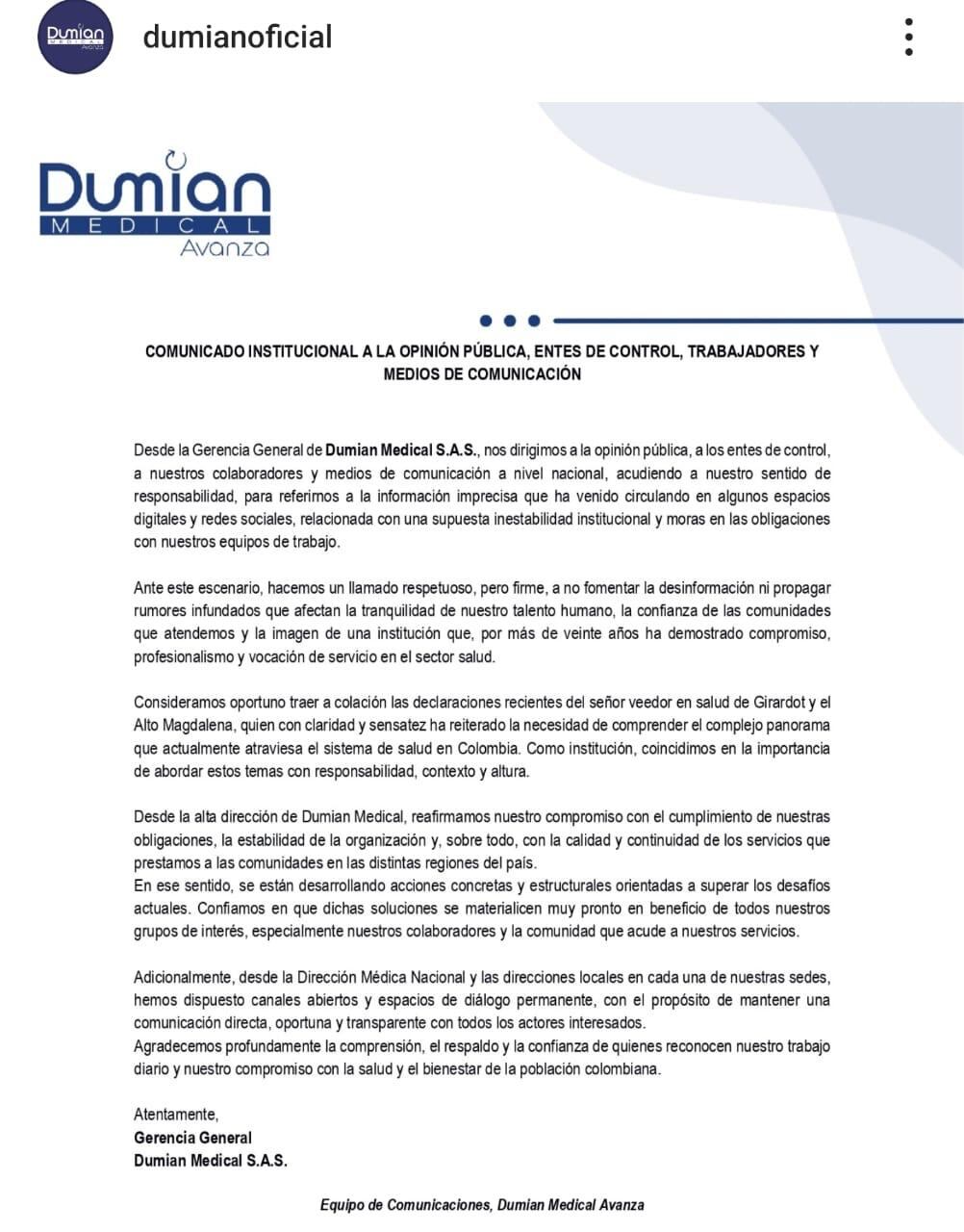 Comunicado Dumian Medical