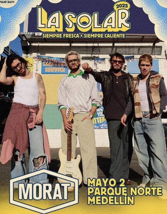 Próxima presentación: Morat se alista para su participación en Colombia como headliner del Festival más Caliente del Planeta: La Solar, este viernes 2 de mayo en el Parque Norte de la ciudad de Medellín.
