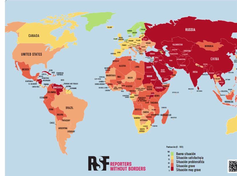 Reporteros Sin Fronteras (RSF) presentó el índice de clasificación mundial de la libertad de prensa de 2025, se determinó una situación general preocupante: . Lo anterior, en el marco del día internacional para la libertad de prensa este 3 de mayo.