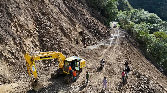 La Secretaría de Infraestructura y Hábitat envió maquinaria amarilla para trabajar en el corredor vial, sumada a una retroexcavadora de oruga que permitió realizar labores de remoción de derrumbe y conformación de la calzada.