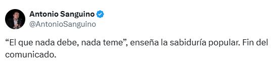 Estas fueron sus palabras: “´El que nada debe, nada teme´, enseña la sabiduría popular. Fin del comunicado".