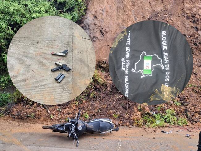 Moto, armas y chaleco del Clan del Golfo incautados- fotos cortesía