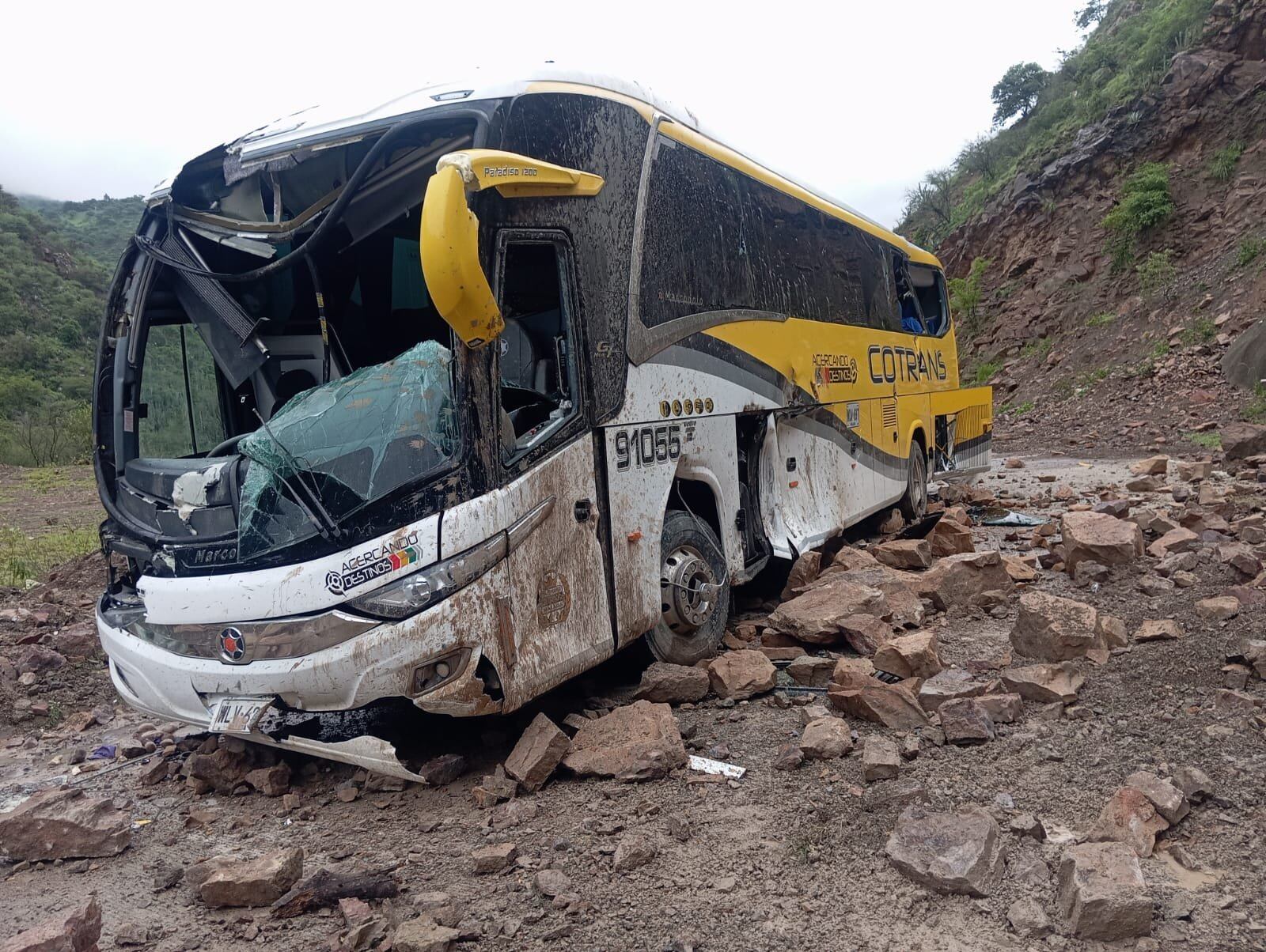 “Debido a las fuertes lluvias que se presentaban en el momento se generó una caída de piedras y tierra de la parte alta de montaña. Entre esas piedras una colisionó al bus, dejando a una persona fallecida y otros lesionados; con lesiones leves”, informó la policía de Santander.