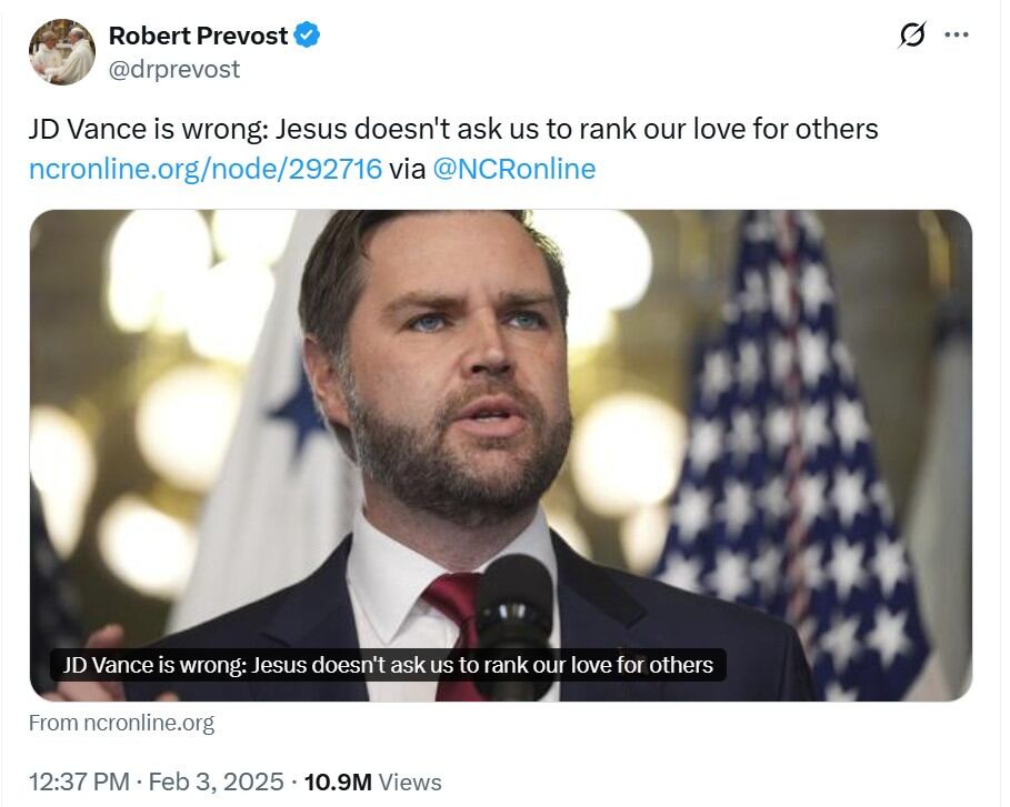 También, el 3 de febrero, compartió un texto titulado “J. D. Vance se equivoca: Jesús no nos pide que clasifiquemos nuestro amor por los demás”.