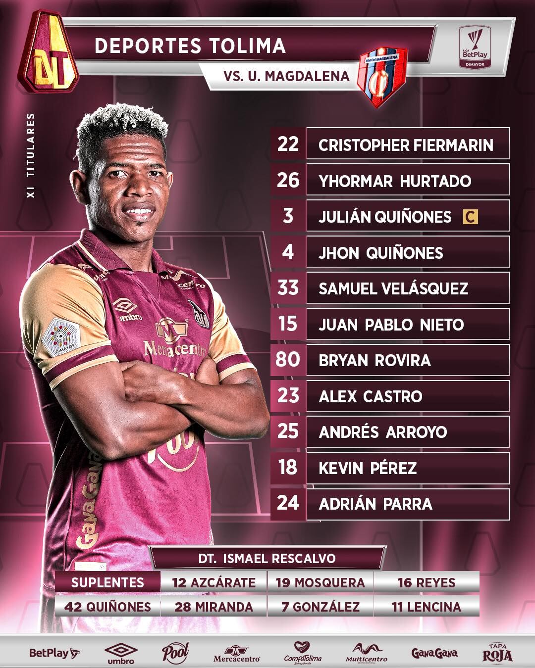 Así formarán Tolima y Unión Magdalena en la fecha 18 de la Liga Colombiana: