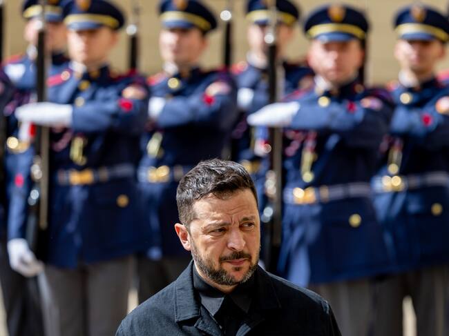 Prague (Czech Republic), 04/05/2025.- Ukraine's President Volodymyr Zelensky arrives to Prague Castle, in Prague, Czech Republic, 04 May 2025. The Ukrainian head of state is on a two-day official visit to the Czech capital. (República Checa, Ucrania, Praga) EFE/EPA/MARTIN DIVISEK / MARTIN DIVISEK (EFE)